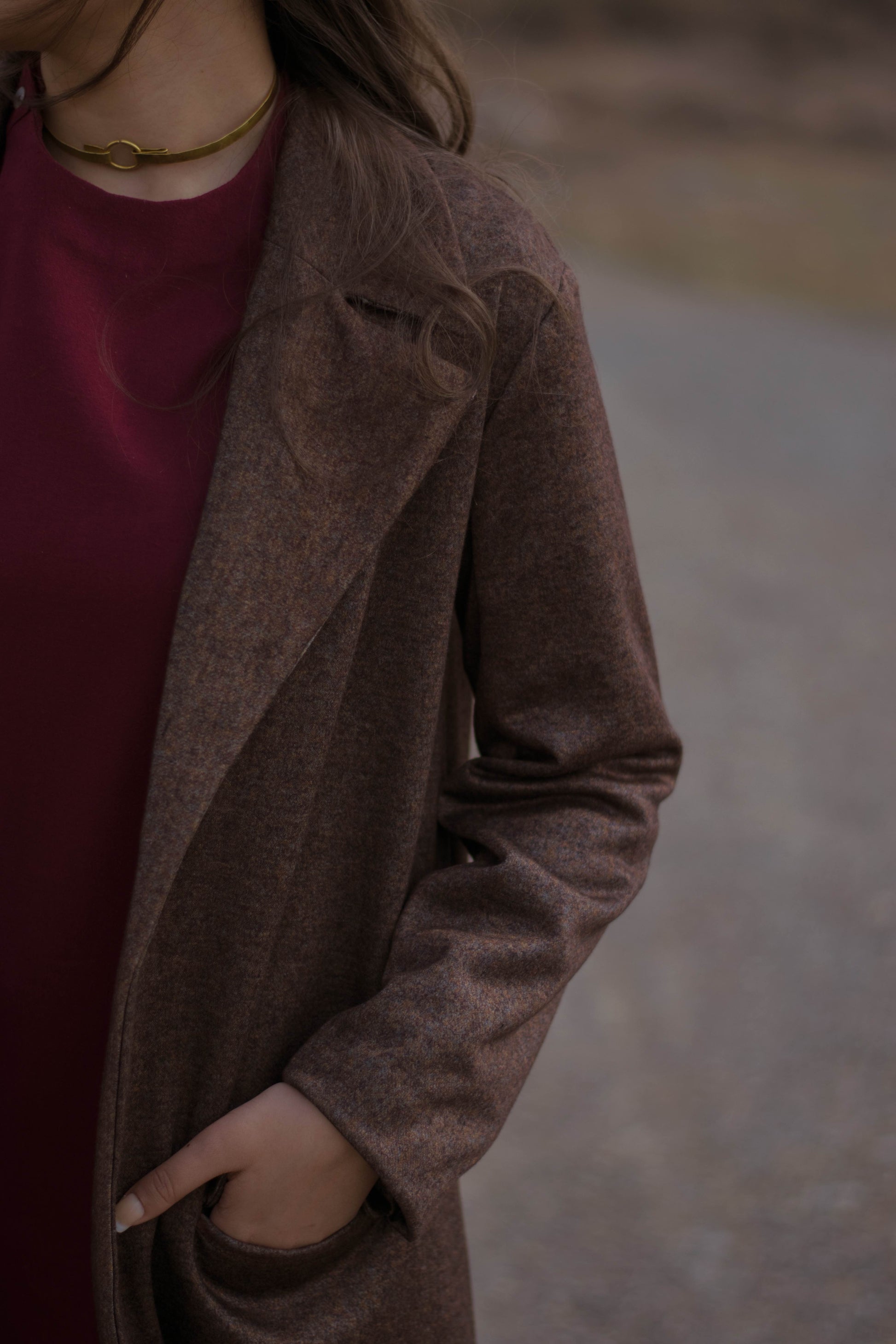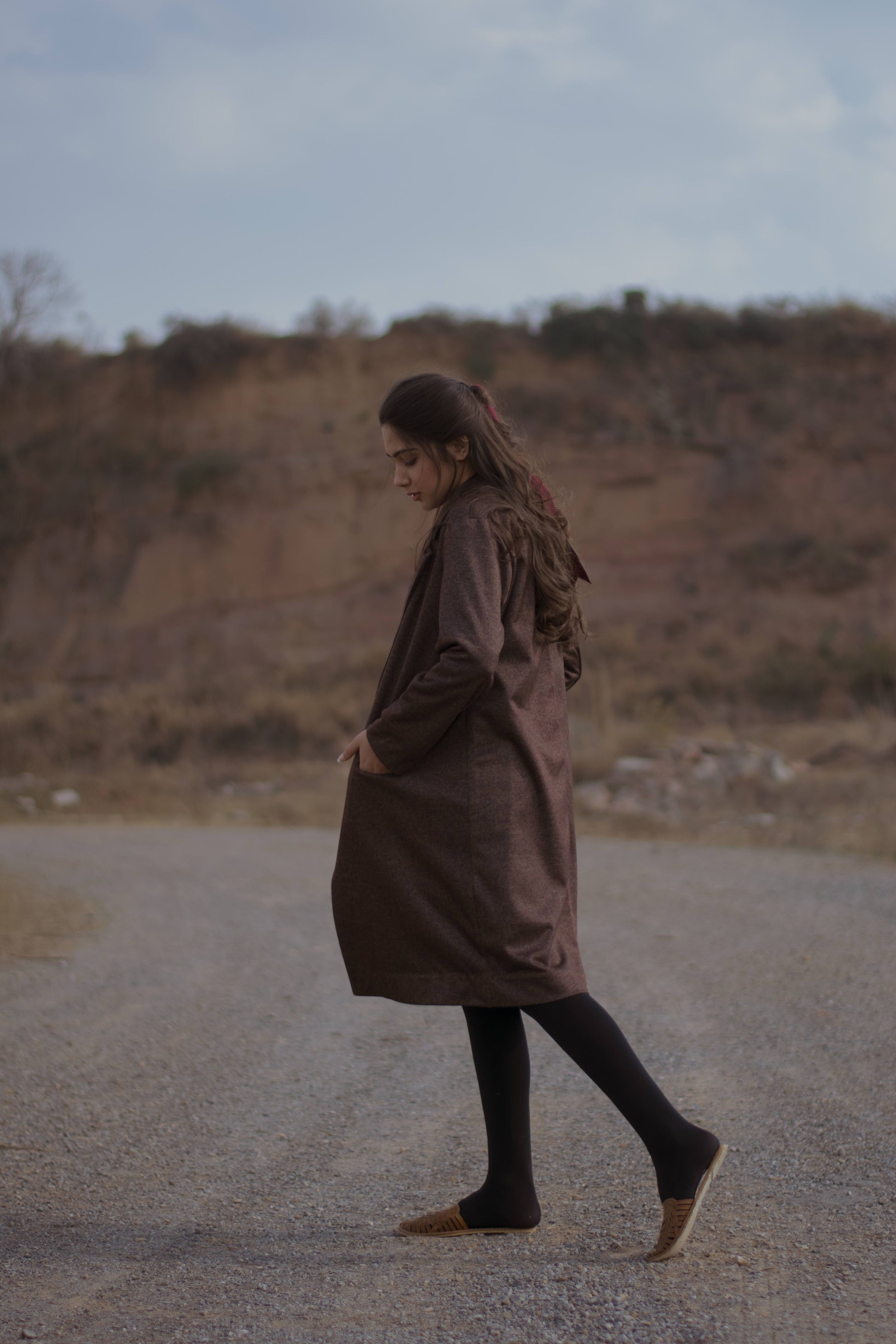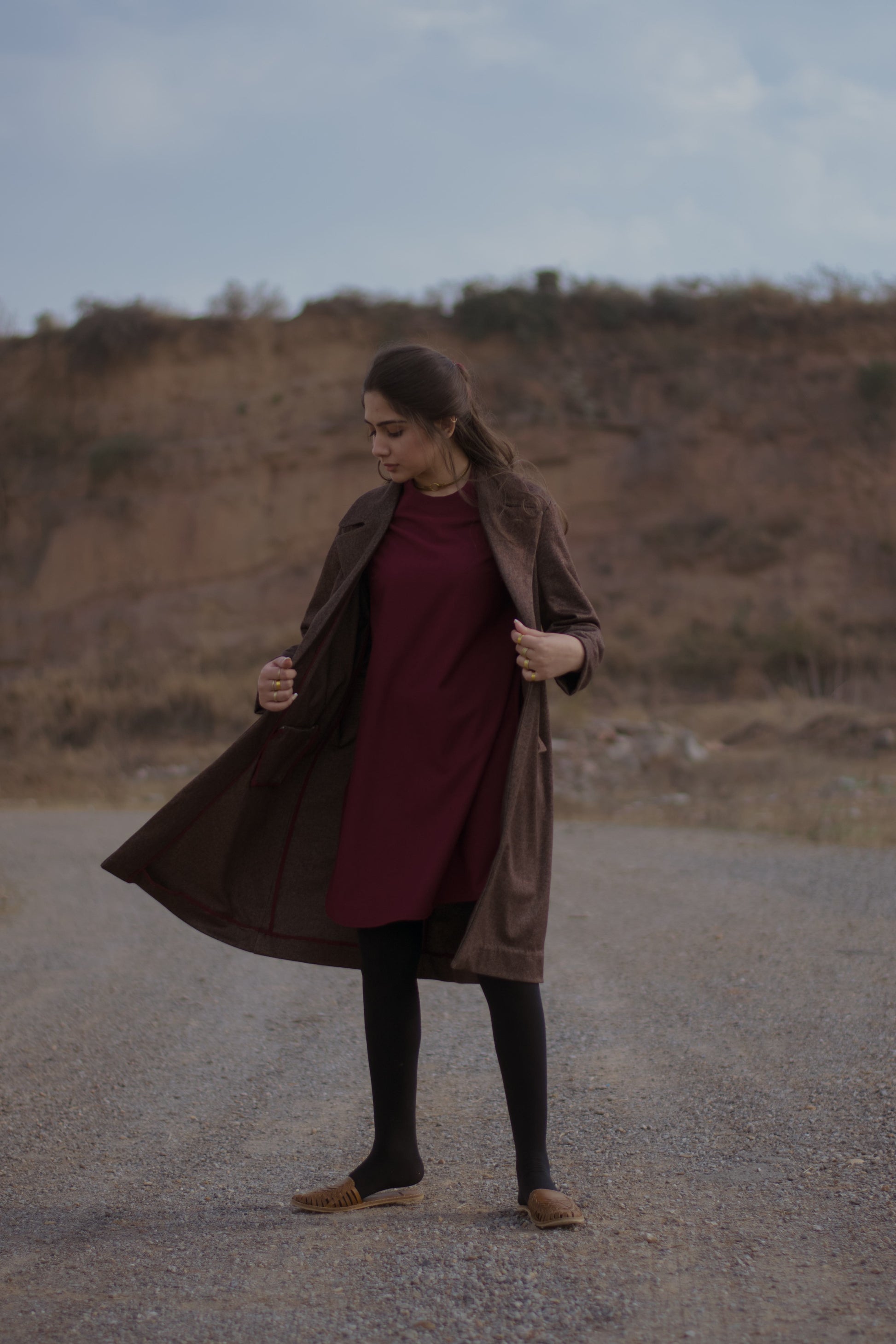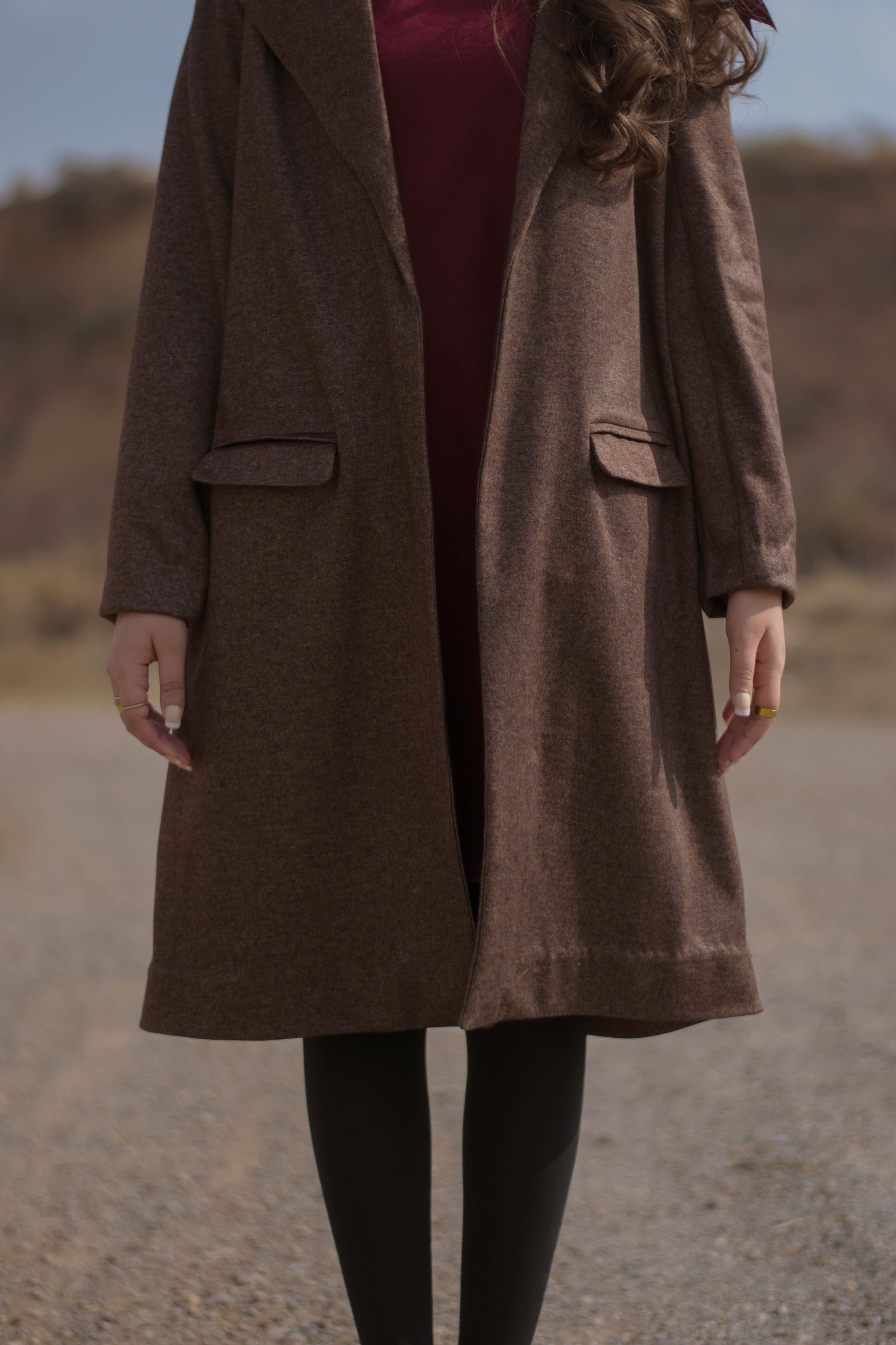 Crafted with a wool blend. This classic coat with over sized lapels that cut across the bust, A perfect tonal outer wear for winters with sleek front pockets for your essentials.