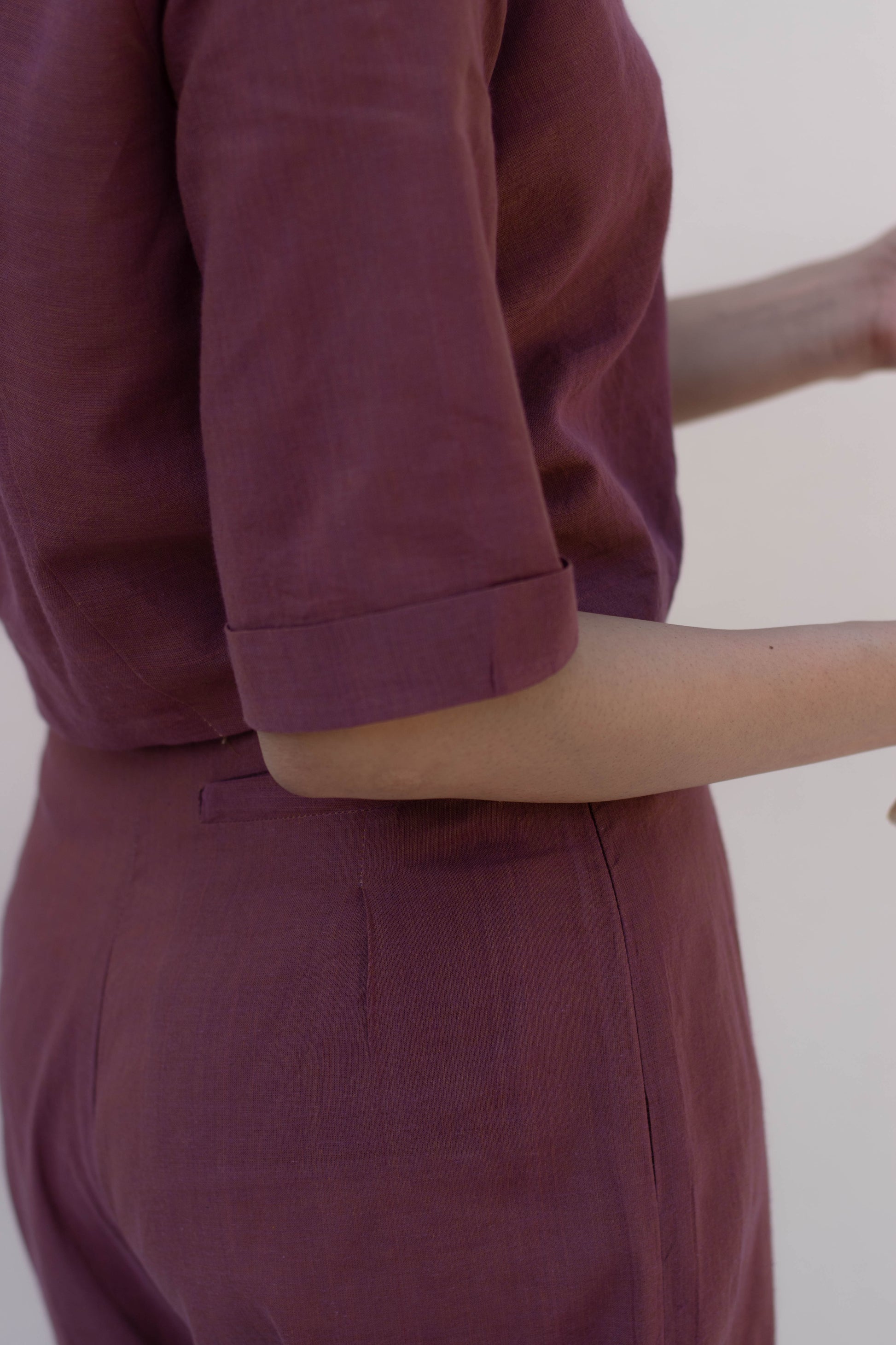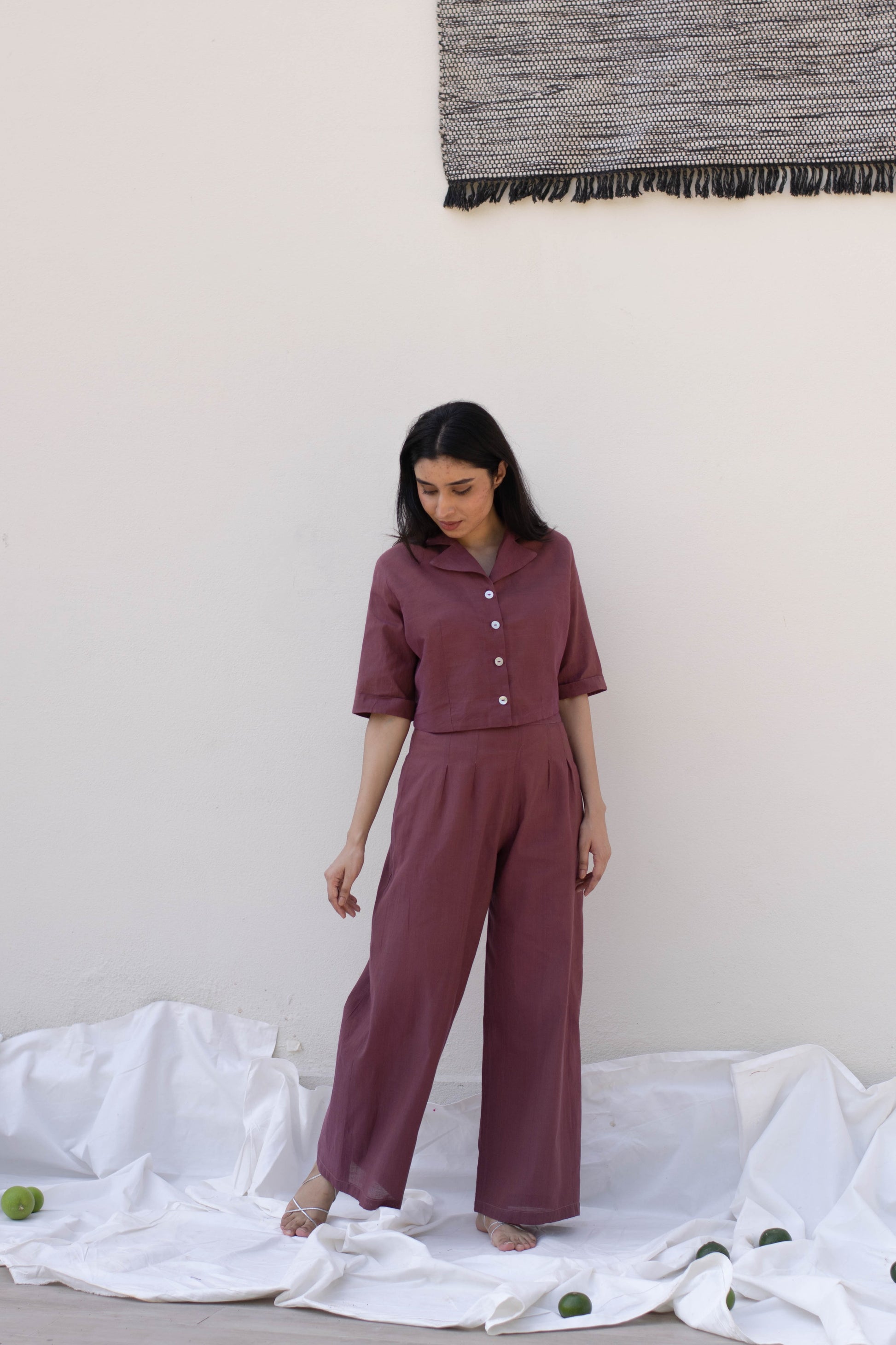 Get ready to slay in our Rose Tan Co-ord Set! This set features a notched collared crop top and relaxed-fit trousers for sheer and effortless look. Perfect for any occasion, our bestseller is now back in a new colour and fabric. Ready to turn heads? (Hint: yes, you are!)