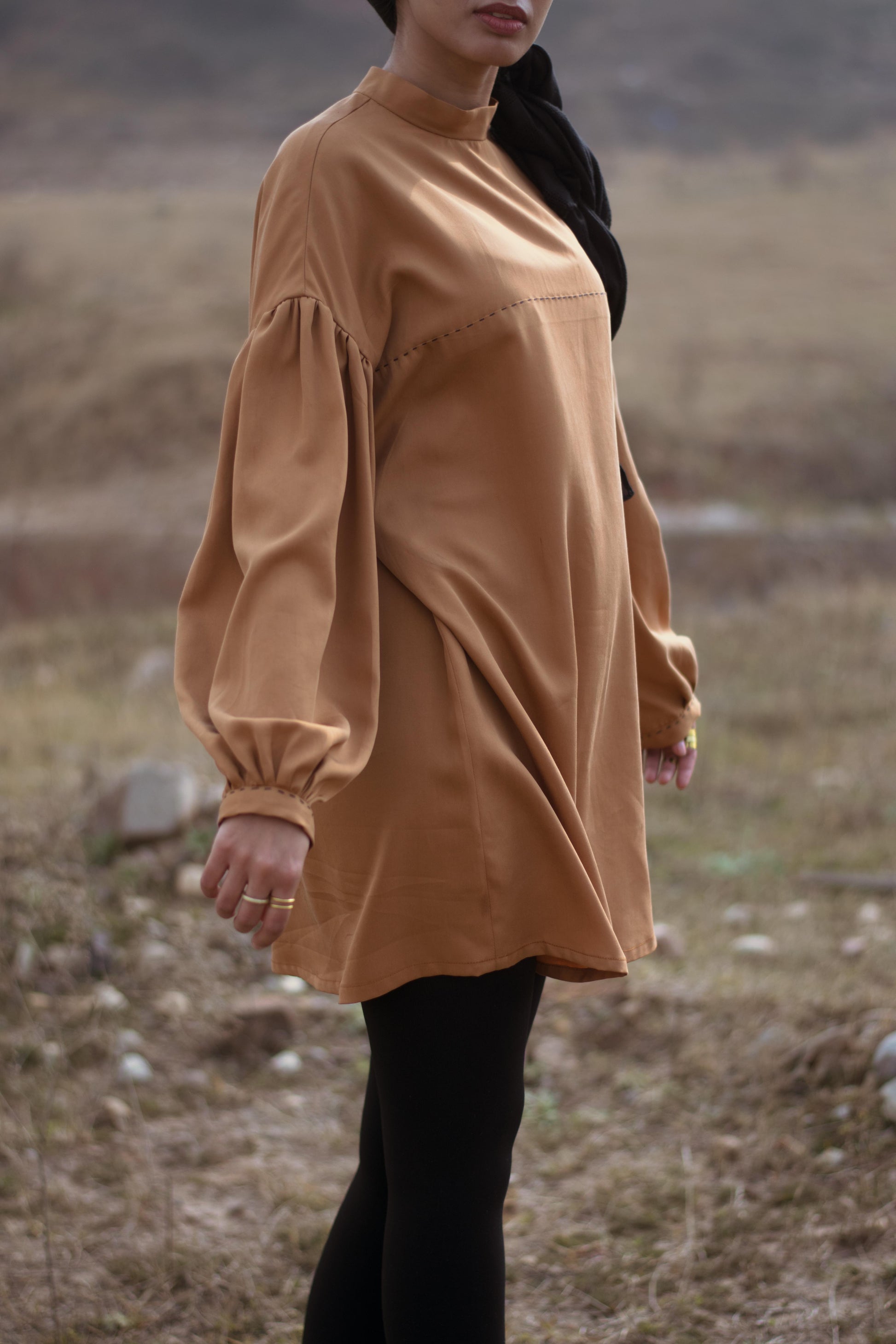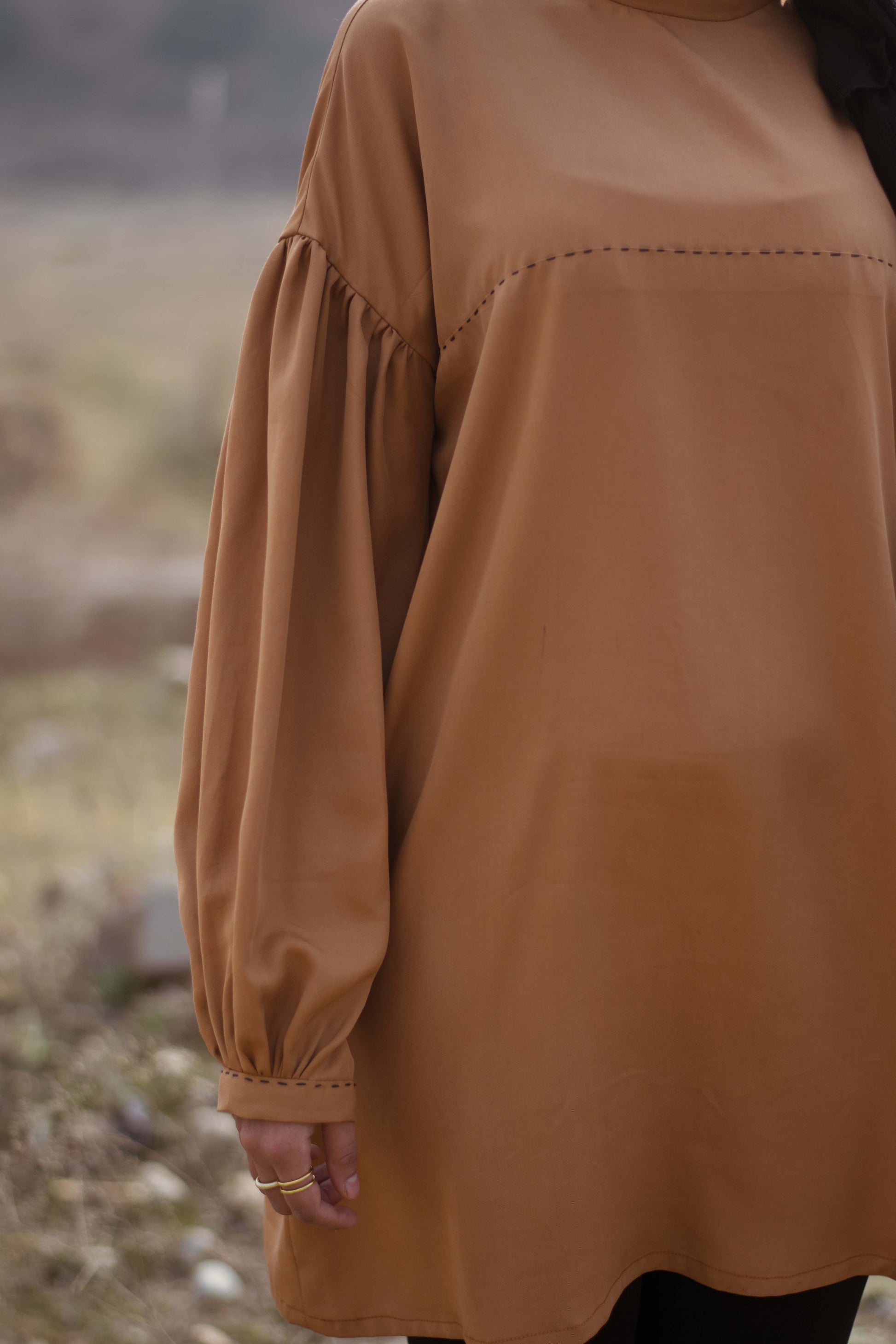 Running stitch detail on cuffs and bodice